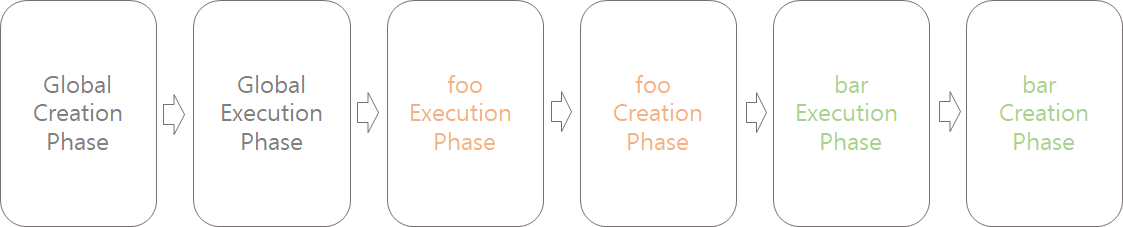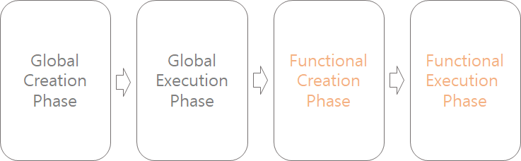 2가지 phase(단계)가 있습니다. 첫번째는 Creation Phase(생성 단계)로 코드를 읽고, 그 다음 Execution Phase(실행 단계)로 코드를 실행합니다.